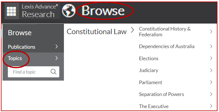 Laws of Australia (Westlaw Australia) - Select Encyclopaedia, Click on Laws of Australia, click on the + next to Government