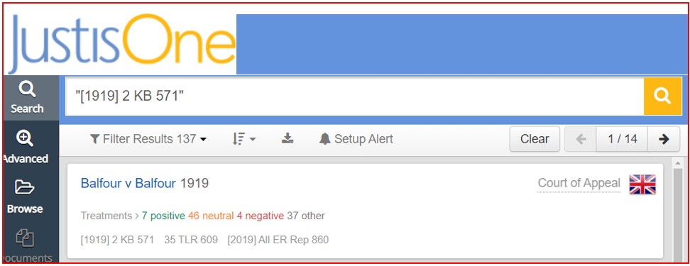 JustisOne - Citation and abstract of UK, Irish, EU, Singaporean and other international case law, full text of UK, Irish, EU, and other international case law (judicially considered legislation)